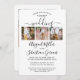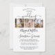 Quer amigos e familiares estejam praticando distanciamento social ou simplesmente vivam longe, conectem-se com eles online com uma cerimônia de na moda virtual de casamento. Este convite elegante moderno permite compartilhar 4 fotos de noivados e convidar convidados para um evento de longa distância via videoconferência pela Internet, streaming ao vivo ou um jogo de vídeo de realidade virtual. Todo texto é simples de personalizar. (DICA DE IMAGEM: Uma maneira fácil de centralizar uma foto exatamente como você deseja é recortá-la antes de carregá-la no site do Zazzle.) Design apresenta quatro imagens de sua escolha, caligrafia com script de estilo manuscrito e tipografia moderna minimalista. Tendy design elogia um tema de casamento simples e na moda. O espaço extra fornecido para uma mensagem pessoal é perfeito se este for um evento reprogramado devido a um cancelamento ou adiamento. Parabéns para a noiva e o noivo!
