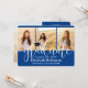Compartilhe a alegria de um segundo grau ou formandos e convide a família e os amigos a celebrarem com a colagem personalizada de 4 fotos convites reais, azuis e brancos. Todas as imagens e textos são simples de personalizar e as cores são fáceis de mudar usando a ferramenta design Zazzle. Este modelo é formatado para uma festa de formatura, mas pode ser facilmente personalizado como um convite ou um cartão de anúncio de casa aberta. Simplesmente mude o texto para incluir quaisquer detalhes de sua escolha, como nomes de pais, honras especiais, título de grau, citação de inspiração favorita, planos futuros de formandos ou novo endereço. Se houver algum texto não desejado, simplesmente exclua-o. O design apresenta um fundo azul real, um boné de conselho de argamassa preto e branco, uma caligrafia moderna com script de tendência, uma elegante tipografia clássica e quatro fotos de sua escolha, como fotos de mais velho ou imagens da cerimônia de início. Este convite de formatura é uma na moda para anunciar uma comemoração especial. Parabéns ao formando!