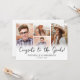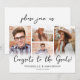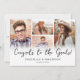 Convites elegantes de festa de formatura dupla com 4 fotos dos formandos, a frase "parabéns aos formandos!", e um modelo moderno que é fácil de personalizar.