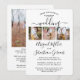 Quer os amigos e familiares estejam praticando o distanciamento social ou apenas morando longe, conecte-se com eles online com uma cerimônia de casamento virtual elegante. Este convite moderno e sofisticado torna possível compartilhar 4 fotos do noivado e convidar os convidados para um evento à distância via videoconferência pela internet, transmissão ao vivo ou um jogo de vídeo de realidade virtual. Todo o texto é simples de personalizar. (DICA DE COLOCAÇÃO DE IMAGEM: Uma maneira fácil de centralizar uma foto exatamente como você deseja é cortá-la antes de fazer o upload para o site da Zazzle.) O design apresenta quatro fotos de sua escolha, caligrafia estilizada com estilo manuscrito elegante e tipografia minimalista moderna. O design atual complementa um tema de casamento simples e sofisticado. O espaço extra fornecido para uma mensagem pessoal é perfeito se este for um evento remarcado devido a um cancelamento ou adiamento. Parabéns à noiva e ao