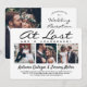 Convide familiares e amigos para uma celebração de casamento simplesmente elegante com este convite de casamento moderno e sofisticado de colagem de fotos "Finalmente Vamos Celebrar". Todo o texto é simples de personalizar para qualquer tipo de evento, incluindo uma festa de recepção após um casamento íntimo, cerimônia de renovação de votos, casamento subsequente, recepção de 1º aniversário, hora do coquetel ou jantar. Personalize-o para incluir os detalhes de sua escolha, como data do casamento, código de vestimenta, RSVP, site, etc. (DICA DE COLOCAÇÃO DE IMAGEM: Uma maneira fácil de centralizar uma foto exatamente como você deseja é cortá-la antes de fazer o upload para o site da Zazzle.) O design moderno minimalista preto e branco apresenta quatro fotos do casal recém-casado, caligrafia de script manuscrita trendy e tipografia elegante estilo máquina de escrever. Quer você tenha se casado em segredo, tenha tido um minimônialo menor ou um microcasamento, ou sua celebração do dia especial tenha sido remarcada devido a um adiamento relacionado à pandemia de covid, a festa do fel