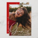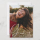 Convide os convidados para a sua festa de formatura com convites com uma foto na frente com a palavra Formando em letra chic, seu nome e seu ano de graduação. Uma grade de fotos de 3 no verso é impressa com as informações do seu partido em vermelho escarlate ou qualquer cor - você pode mudar a cor com nossas ferramentas de edição. MAIS CORES e designs em nossa loja, incluindo anúncios, cartões salve a data e postais.
