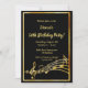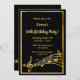 Festa de vamos e dança! Uma carta moderna de 50ª convite de aniversário para homens e mulheres. Um fundo preto clássico, com falso quadro dourado e notas musicais, letras ouros coloridas. Modelos para informações sobre a sua parte. Anterior: as notas de música douradas a preto falham.
