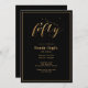 Elegante 50º convite de aniversário em um design preto e dourado. Personalize com os detalhes do seu partido.