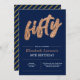 Convite 50ª Festa de aniversário Moderna Dourada e Azul |