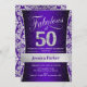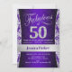 50º Convite de aniversário em roxo e prata. Cartão de convite elegante com prata brilhante falso e diamantes. Apresenta cor damasco e fonte de script. Fabuloso aos cinquenta! Design clássico perfeito para uma festa de na moda. Envie-me uma mensagem se precisar de uma idade personalizada.