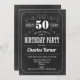 Convite 50ª Festa de aniversário - Preto Quadro Preto Bran