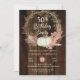 Chic rural, abóbora branca com uma pinca seca a terracotta rosa hydrangea floral com pampas e outras gramíneas secas adornadas por design de "50ª Festa de aniversário" num fundo de madeira suja e manchada escura. Esta design rusticascompósita de madeira feita por Designs Holiday Hearts (direitos reservados).