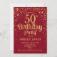 50º Convite de aniversário. Design elegante em vermelho e ouro brilhante. Possui fonte de script na moda e confetti. Envie-me uma mensagem se precisar de idade personalizada.