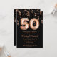 Este elegante e glamouroso convite de aniversário apresenta o número 50 em ouro rosa com confete de ouro rosa. O texto combina o script manuscrito e as fontes sans serif modernas para um aspecto elegante e sofisticado.