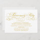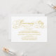 Convite de festa de aniversário em letra dourada amarela em um fundo branco
