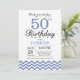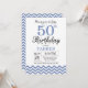 50º Convite de Aniversário com Blue Chevron.Preto & Branco. Aniversário Adulto. O Dia do Homem ou da Mulher Convidam.
