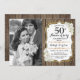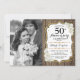 Convite 50º Aniversário com Foto - Madeira Dourado Branco