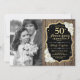 Convite de 50º Aniversário de Casamento com Foto. Design rústico com brilho dourado falso. Características rosas brancas, padrão de madeira de celeiro escuro, fonte script e confetes. Pode ser personalizado para qualquer ano! Mensagem para mim se precisar de mais personalização.