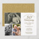 Personalize com suas 3 fotos favoritas e os detalhes da sua celebração especial de 50º aniversário de casamento dourado em tipografia dourada chique. O verso apresenta confetes em forma de coração dourado. Concebido por Thisisnotme©