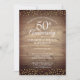 Com delicados corações de amor dourados num fundo de painéis de madeira rústica. Personalize com as informações especiais dos seus cinquenta anos de aniversário dourado em letras elegantes e confetes de corações dourados no verso. Desenhado por Thisisnotme©