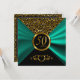Convites de Aniversário de 50 anos Lindos Templates. Convites de festa com um padrão exótico de leopardo com dourado metálico escuro, cetim jade azul-esverdeado e fundo preto rico e profundo. Muito moderno e na moda com um sabor exótico, este convite versátil, sofisticado e de designer é perfeito para todas as ocasiões especiais - aniversários marcantes, aniversários de casamento, casamentos, festas de aposentadoria, coquetéis e jantares, eventos corporativos e outras soirées festivas. Estes convites modernos e na moda serão um grande sucesso com seus convidados. Este design funcionará bem para uma Reunião de 50 anos de turma, aniversário de 50 anos, 50 anos de serviço ou qualquer outro evento ou ocasião de 50 anos. ⭐Este Produto é 100% Personalizável. Gráficos e/ou texto podem ser adicionados, excluídos,