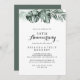 Este convite de 50 anos de casamento, branco e verde tropical, é perfeito para um evento rústico. A design apresenta palmeiras verdes folhas buquês com flores brancas adoráveis. Altere o número para celebrar qualquer marco de aniversário.