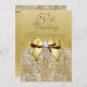 Convites personalizados elegantes e customizados para celebração de bodas de ouro de 50 anos com cores douradas brilhantes e imagem impressa com lantejoulas e joias, padrão de gemas, imagens de laços e fitas douradas brilhantes e diamantes digitais bling joias em um fundo gradiente dourado chique com texto marrom. Observação: todos os convites no Zazzle têm imagens impressas planas - não são laços, diamantes ou lantejoulas reais. Esses convites sofisticados e glamorosos para aniversário de casamento dourado são decorados / impressos em ambos os lados. Convites de festa de aniversário de cinquenta anos lindos, chiques, modernos e sofisticados. Se precisar de ajuda para personalizar o seu produto, por favor entre em contato comigo através da minha loja. Estou à disposição para ajudar.