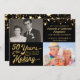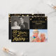 Convide seus convidados com este convite de aniversário de 50 anos de casamento em preto e dourado com estrelas douradas com tipografia retrô que diz 50 ANOS EM CONSTRUÇÃO e permite incluir o ano do casamento como parte do design e adicionar as fotos do ENTÃO e do AGORA. Os detalhes do convite da festa estão no verso.