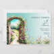 Feminina Floral de Jardim Teal 50º Convite de Aniversário. Um portão para um jardim florescente em um fundo verde-claro. Personalize o texto e personalize-o no seu evento especial. "50 anos e ainda em floração" envia uma mensagem de uma mulher madura com um olhar saudável e positivo sobre a vida. Cada idade é um rosto na vida - agora é o seu tempo para florescer e brilhar. A parte traseira da placa tem o mesmo gradiente de cor com a opção de texto adicional: ex. Traga seu parceiro, código de vestimenta: relaxado ou texto de sua escolha.