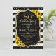 Convite de 50º Aniversário de Casamento. Design floral preto e branco com falso brilho dourado. Apresenta girassóis, listras pretas e brancas, fonte de letra estilosa e confetes. Perfeito para uma festa elegante. Personalize com seus próprios detalhes.