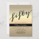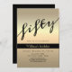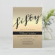 Caligrafia simples, moderna, moderna, elegante convite de 50 anos, preto e ouro.