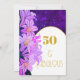 Convite 50º Aniversário Trendy Dourada Floral Roxo