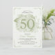 50º convite de aniversário com o número decorativo 50. Este design sutil e elegante apresenta uma lavagem a aquarela com flores silvestres delicadas, folhagem e um quadro delicado em tons de verde.