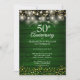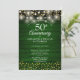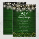Com belas luzes de corda e confetes delicados de corações de amor dourados sobre um fundo de painéis de madeira rústica verde. Personalize com as informações do seu aniversário de ouro especial em letras chiques. Criado por Thisisnotme©