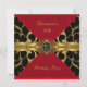 Convite 50º Aniversário Vermelho Dourado Damasco Floral Je