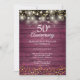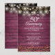 Com belas luzes de corda e confetes delicados de corações de amor dourados sobre um fundo de painéis de madeira rústica vermelha. Personalize com as informações do seu aniversário de ouro especial em letras elegantes. Criado por Thisisnotme©