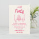Convite 50º Bolo Rosa Desenhado à Mão Alô 50 Aniversário