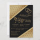 Convite de Aniversário de 50 anos pronto para você personalizar. Apresenta um lindo padrão de coração dourado em um fundo preto e dois corações dourados de metal falso e a palavra 50th em um design ornamentado metálico dourado. Este lindo convite será um sucesso com seus convidados. Também funcionará bem para qualquer outro evento ou ocasião, como uma festa de noivado, festa de aniversário, coquetel, formatura, aposentadorias, casamentos, chá de bebê, festa de aniversário, eventos corporativos, eventos de gala, funções de apreciação do cliente, grandes aberturas, etc... simplesmente mudando as palavras e, se necessário, movendo ou removendo qualquer gráfico individual. Um design moderno pronto para personalizar para sua festa ou evento. Este Produto é 100% Personalizável. Gráficos e/ou texto podem ser adicionados, excluídos, movidos, redimensionados