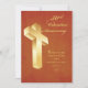 Uma cruz dourada foca a atenção na mensagem de aniversário da 50ª Portaria e na citação de escrituras. Uma comemoração do Jubileu Ouro é realmente um momento para dar obrigados a Deus e este convite é perfeito para convidar outros a celebrar com um padre, ministro, pastor ou deacão nesta ocasião especial de um 50º aniversário da ordenação.