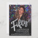 50 caracteres em negrito com efeito de estilo prateado, em cor prateada e preto. Personalize este 50º convite de aniversário de festa de aniversário com os seus próprios detalhes de evento de festa de aniversário e com as suas fotos de aniversariante ou rapaz. Outros anos, estão disponíveis uma versão em folha e itens correspondentes. © Original design por Sarah Trett para www.mylittleeden.com no Zazzle.