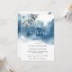 Moderno, cativante 50º (ou qualquer outro número) Convite de aniversário com delicado pano de fundo azul de cor aquosa e belo buquê floral de canto. Utilização de caligrafia escrita à mão e tipografia de blocos. Capacidade de mudar adicione qualquer número ou até mesmo remova o número da placa, assim como a capacidade de mudar de parte para almoço, brunch, bash ou qualquer outro que você quiser usando caixas de texto fornecidas. Buquê de canto gracioso com flores de aquarela e folhagem em azul empoeirado, azul marinho, branco, cinzas e tons de sábio. O cartão está de volta com mancha azul de água. Parte do nosso casamento e da coleção de eventos "Montanhas Azuis Russas".
