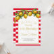 Bellisimo Eleve o seu aniversário especial com este limão botânico branco e vermelho elegante, inspirado italiano, convite para aniversário de stripe. Um design muito elegante. Um convite personalizado com suas informações é facilmente inserido no modelo. O design eterno de limões ensolarados e listras vermelhas invocam uma vibração de verão no seu dia especial. Torne este design exclusivo seu.