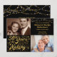Convide seus convidados com este convite de aniversário de 50 anos de casamento em preto e dourado com tipografia moderna que diz "50 Anos em Fazer" e permite incluir o ano do casamento como parte do design e adicionar as fotos de ENTÃO e AGORA deles.