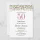Este simples design de aniversário de 50 anos, cor-de-rosa, "50 e Fabuloso", consiste em tipografia popular e confetti num fundo branco.