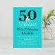 Convide a sua família e amigos para celebrar o Fabuloso 50º Aniversário do seu amado com este corajoso e elegante design de 50º aniversário. É fácil editar a frente do convite com o nome da aniversariante e informações da festa. **TENHA CERTEZA DE EDITAR AS COSTAS** com seu nome lembrando-lhe o quão fabulosa ela é! 50 e Fabuloso em turquesa e texto branco sobre fundo preto.