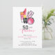 50 e fabuloso convite de 50 anos com design de maquiagem ilustrada com aquarela. Projetado e ilustrado por Kristine Lee Designs www.kristineleedesigns.com