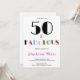 Convite de Aniversário de 50 anos Fabuloso em Art Déco. Convite de aniversário em branco com preto e rosa velho com cores pastéis incluindo verde suave para celebrar um marco vibrante com o nosso convite de aniversário personalizável 50 & Fabuloso! Com uma tipografia moderna e ousada em preto e um arco-íris de cores pastéis alegres, este convite atraente define o tom perfeito para uma celebração de aniversário de 50 anos divertida e fabulosa. Personalize os detalhes da festa para combinar com o seu evento - seja uma noite de cocktails chique, uma festa no quintal ou um jantar glamoroso. Não se esqueça de verificar nossos produtos combinando para tornar o dia ainda mais especial!