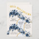 50º convite de aniversário em rosas azuis e arcos dourados. O design é chamado "Cinquenta e Fabuloso" em letras douradas, letras de estilo de decoração artística e o modelo é configurado para você adicionar seu texto de convite personalizado. Este bonito design floral tem modernos arcos de ouro e terras de botões de flores, flores de rosa e folhagem em tons de azul e areia. Perfeito para uma festa de aniversário surpresa, almoço de aniversário, festa de chá de jardim, verão de primavera ou celebrações de aniversário de 50 anos!