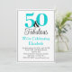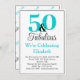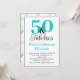 Convide a sua família e amigos para celebrar o Fabuloso 50º Aniversário do seu amado com este corajoso e elegante design de 50º aniversário. É fácil editar a frente do convite com o nome da aniversariante e informações da festa. **TENHA CERTEZA DE EDITAR AS COSTAS** com seu nome lembrando-lhe o quão fabulosa ela é! 50 e Fabuloso em turquesa e texto preto sobre fundo branco.