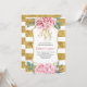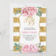 50 e Fabuloso Convite de Aniversário - Flores de Água Rosa Esbranquiçadas e Douradas Listras Luminosas