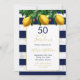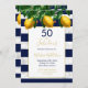 Elegante Marinho Marble Limões botânicos de cor branca e Dourada Stripe 50º aniversário Convite. Um design muito elegante, toda a informação é facilmente transformada para a sua. A design faz parte de um Suite de papel de carta de Casamento dos Designs Finos de Chessie. Encontrado na Coleção https://www.zazzle.com/collections/50_and_fabulous_invitations-119545656355154310