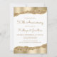 This trendy 50th wedding anniversary party invitation features sparkly gold faux foil and glitter top and bottom borders on a white background. The words "50th Anniversary" and the first names of the couple appear in casual gold-colored handwriting script, with the rest of the customizable text in sans serif font. The same gold foil and glitter border design appears on the reverse side.
