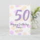 Convite 50th birthday add name date purple orange polkadot