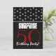 Este 50th design do aniversário da surpresa é parte da coleção branca preta vermelha dos convites do aniversário do aniversário da surpresa. Eu recomendo este design no papel metálico hued do gelo para um shimmer e um brilho elegantes.